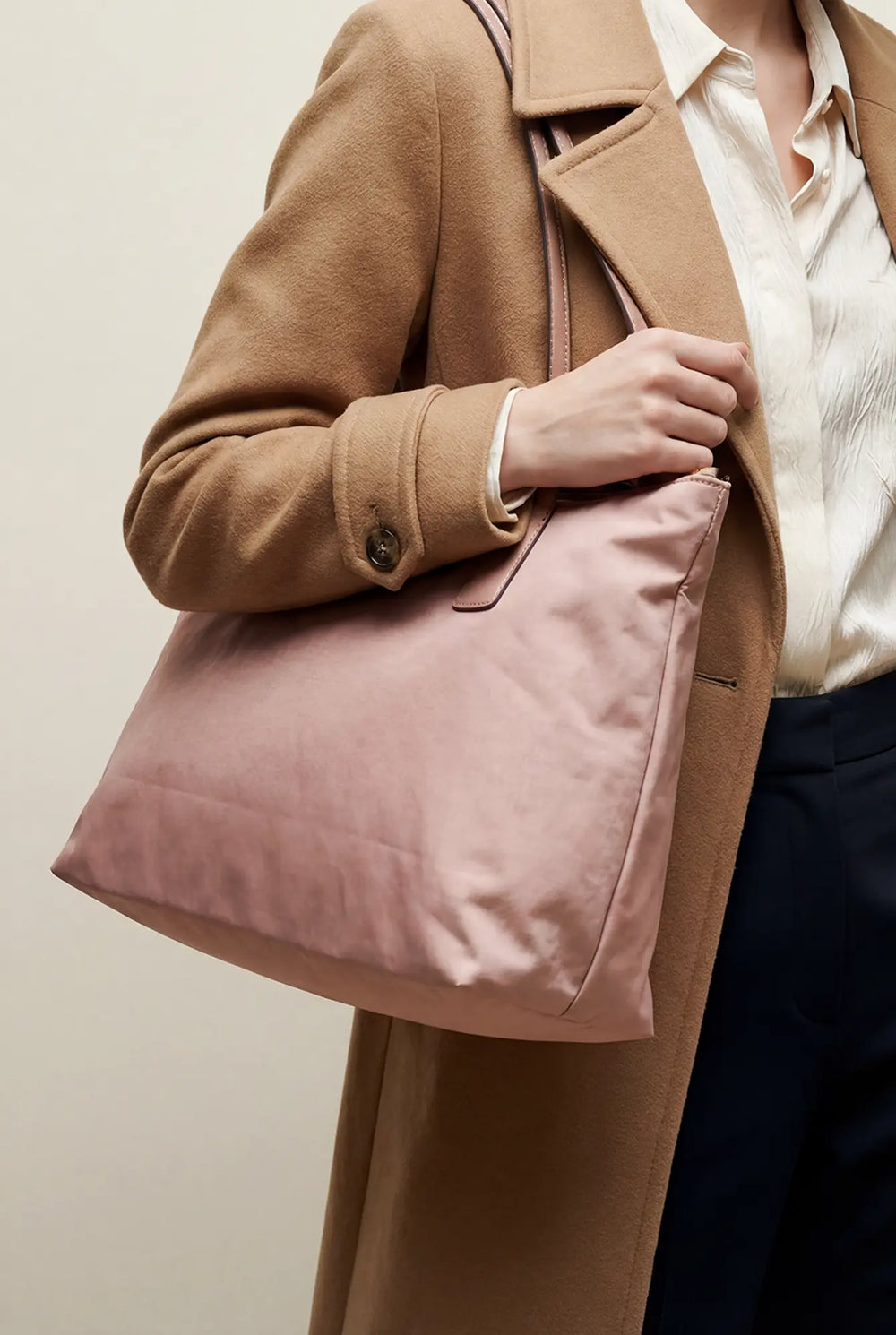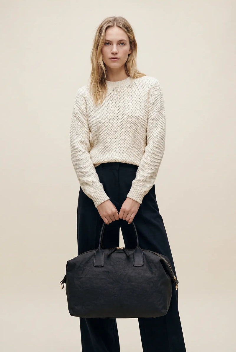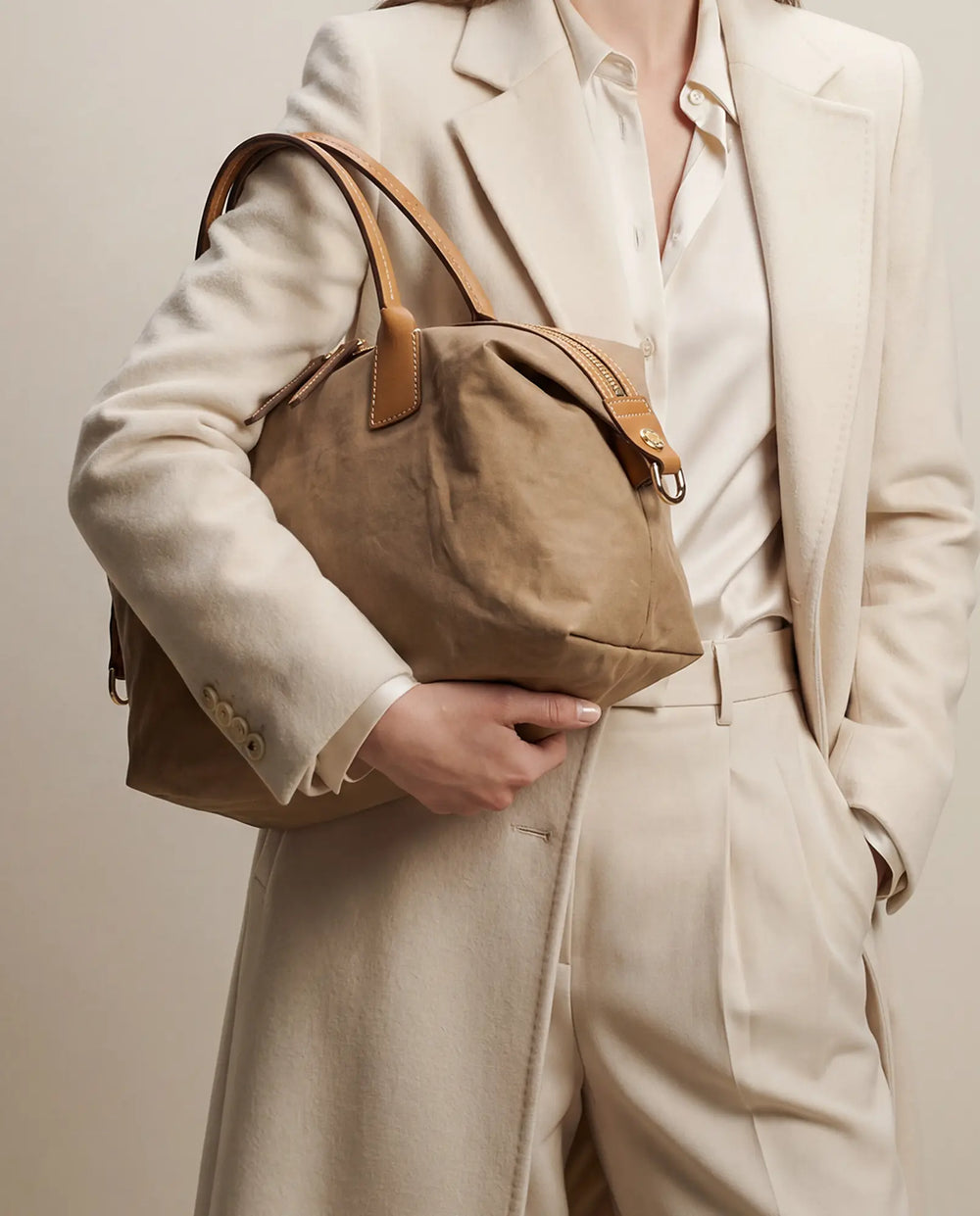 Linylen® is Roberta Pieri’s innovative fabric. It captures the natural elegance of linen/cotton while being a breakthrough 100% nylon fabric. Through a proprietary finishing process, the fiber gains remarkable structure and water-repellent performance, so our bags keep their crisp silhouette without extra internal reinforcements. The result: lighter carry, cleaner construction, and less material waste.