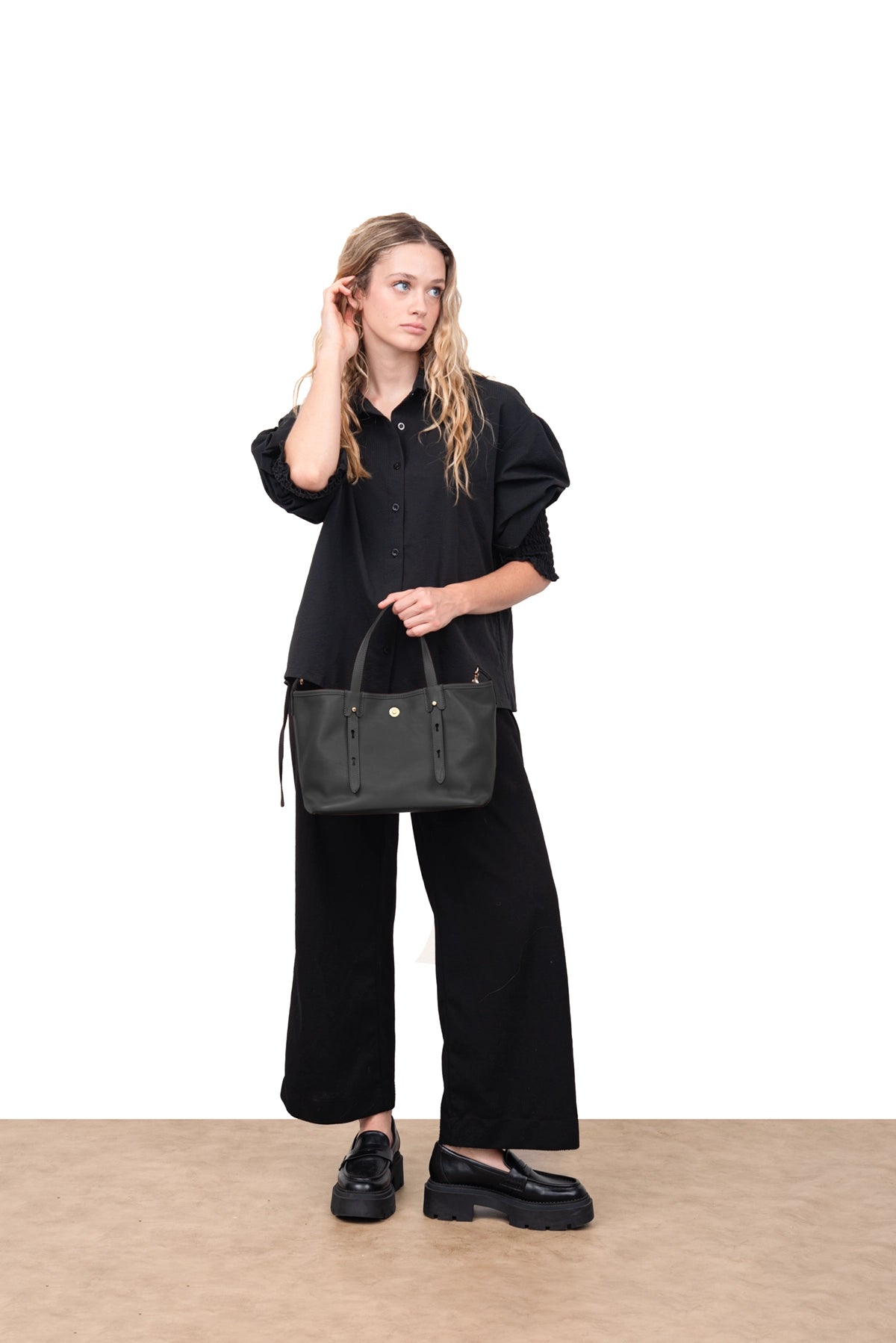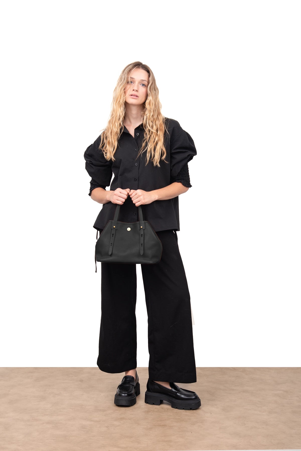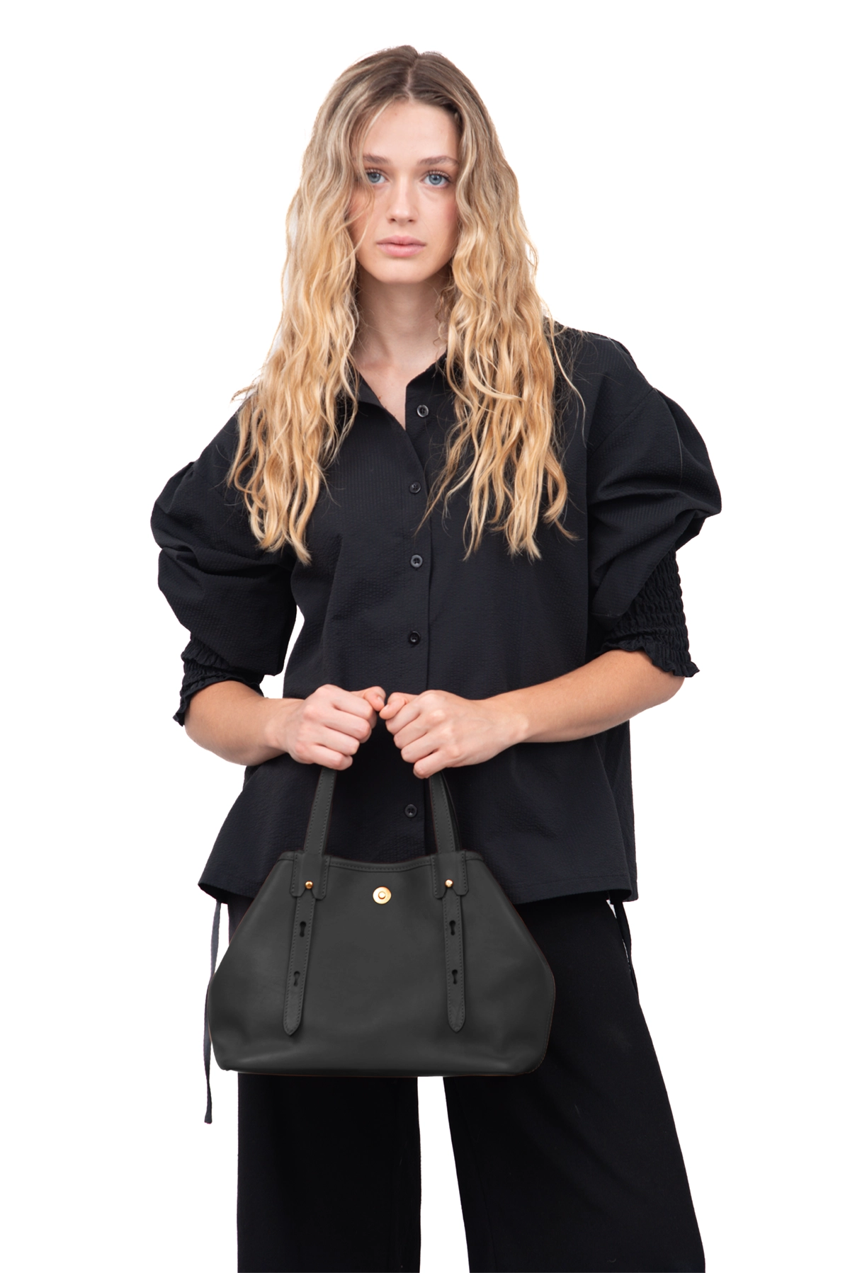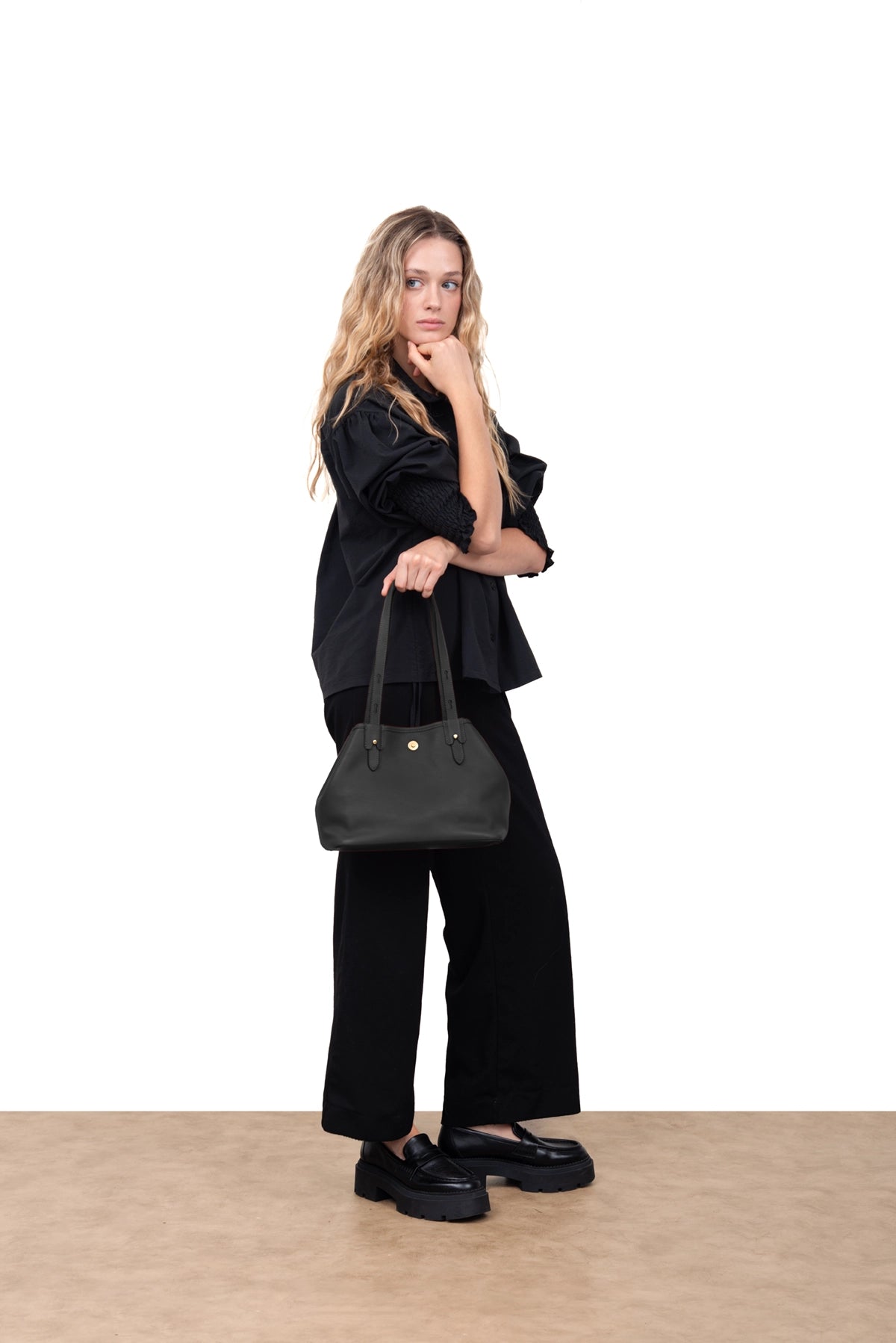 Compatta ma capiente, Emma 28 è perfetta dagli impegni mattutini agli appuntamenti serali. I manici in pelle regolabili permettono di portarla a mano o a spalla, adattandosi con eleganza alla tua giornata. La chiusura scorrevole con ganci in nickel aggiunge un tocco sofisticato, mentre l’interno ben organizzato mantiene gli oggetti essenziali sempre in ordine.